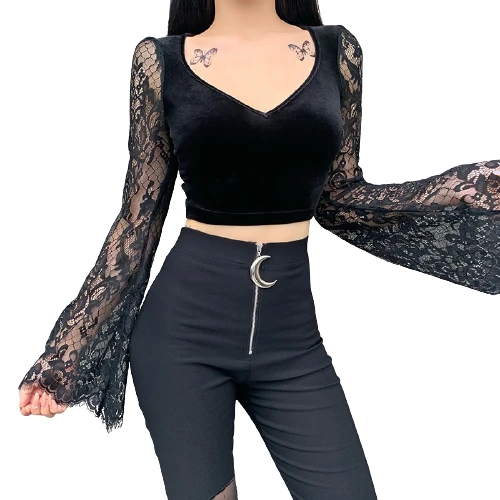 Parmi les manches que vous expérimentez, citons les manches 3/4, les manches cloche, les hauts papillon, les manches bouchon et les bretelles, pour n’en citer que quelques-unes. Un Crop Top Dentelle Manche Longue est une tenue de soirée parfaite.