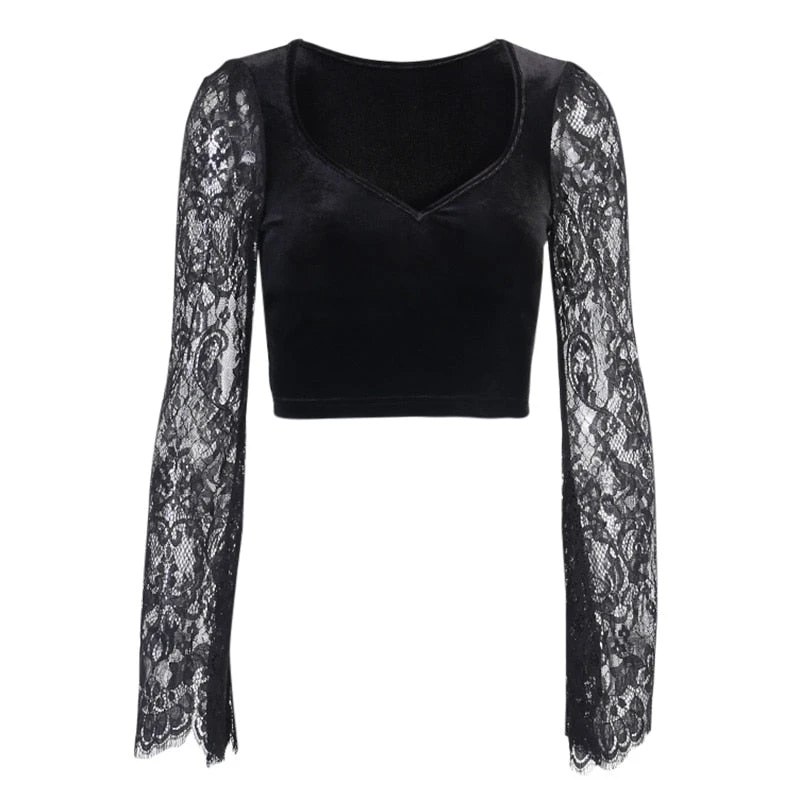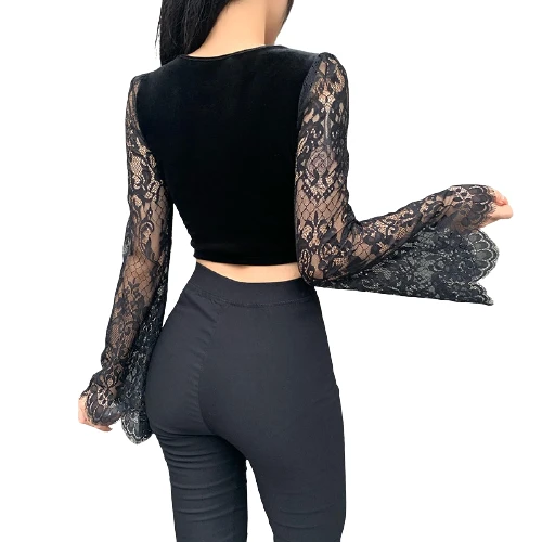 Vous n’aimez pas être admirée en soirée par vos prétendants ou vos copines ? Alors ce Crop Top Dentelle Manche Longue n’est sûrement pas fait pour vous…