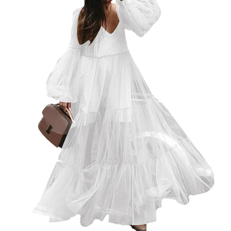 Cet imprimé non conventionnel fait ressortir le charme universel des tenues portées. Embellissant les cols et les manches, la tendance des volants est en plein essor. Préparez-vous à adopter cette Robe Dentelle Longue coquine surmontée de volants.
