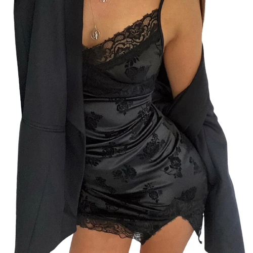 [NOUVEAUTÉ 2021] Cette Robe Nuisette Dentelle Noire va vous étonner. Sa Fente sur le côté offre une Féminité et Subtilité Incomparable. Testez-la vite !
